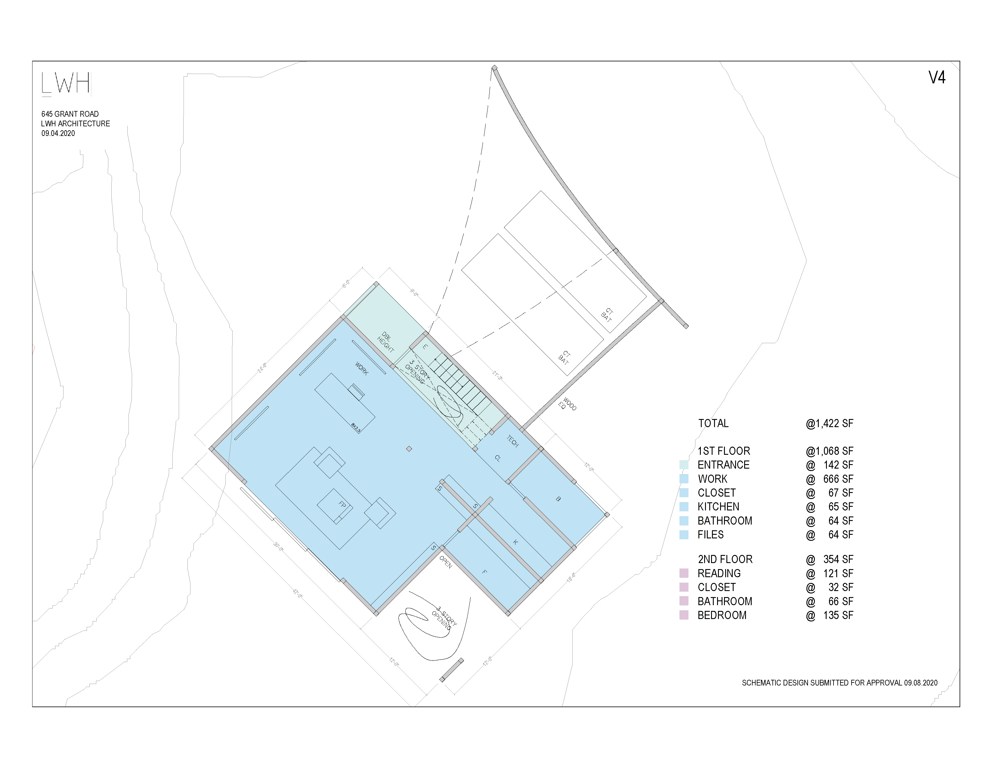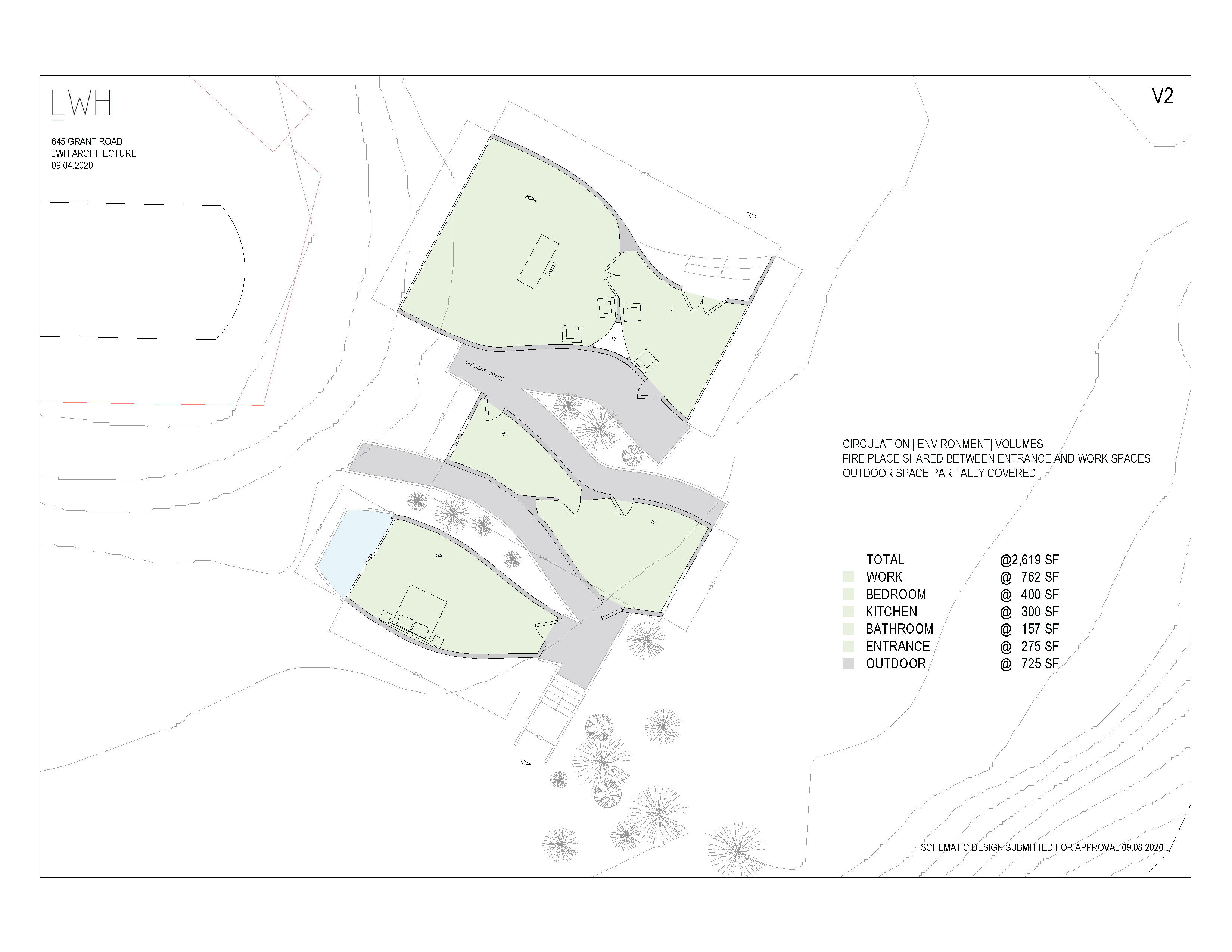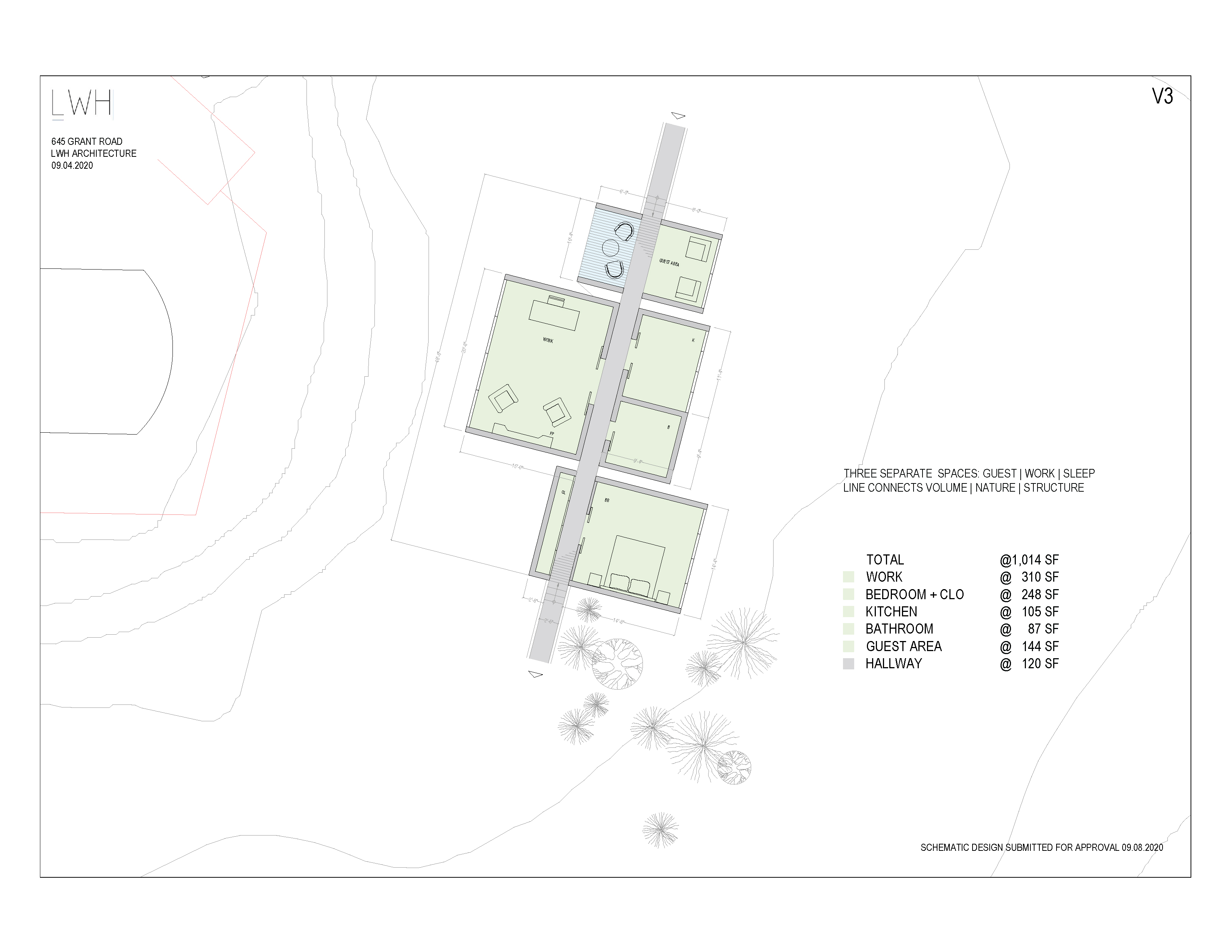 645 Grant Road – Schematic Study This project explores four architectural proposals for a live-work studio designed for a lawyer seeking retreat, focus, and connection to the landscape. Each version presents a distinct spatial strategy integrating work, rest, and minimal living functions within a compact, elevated structure.