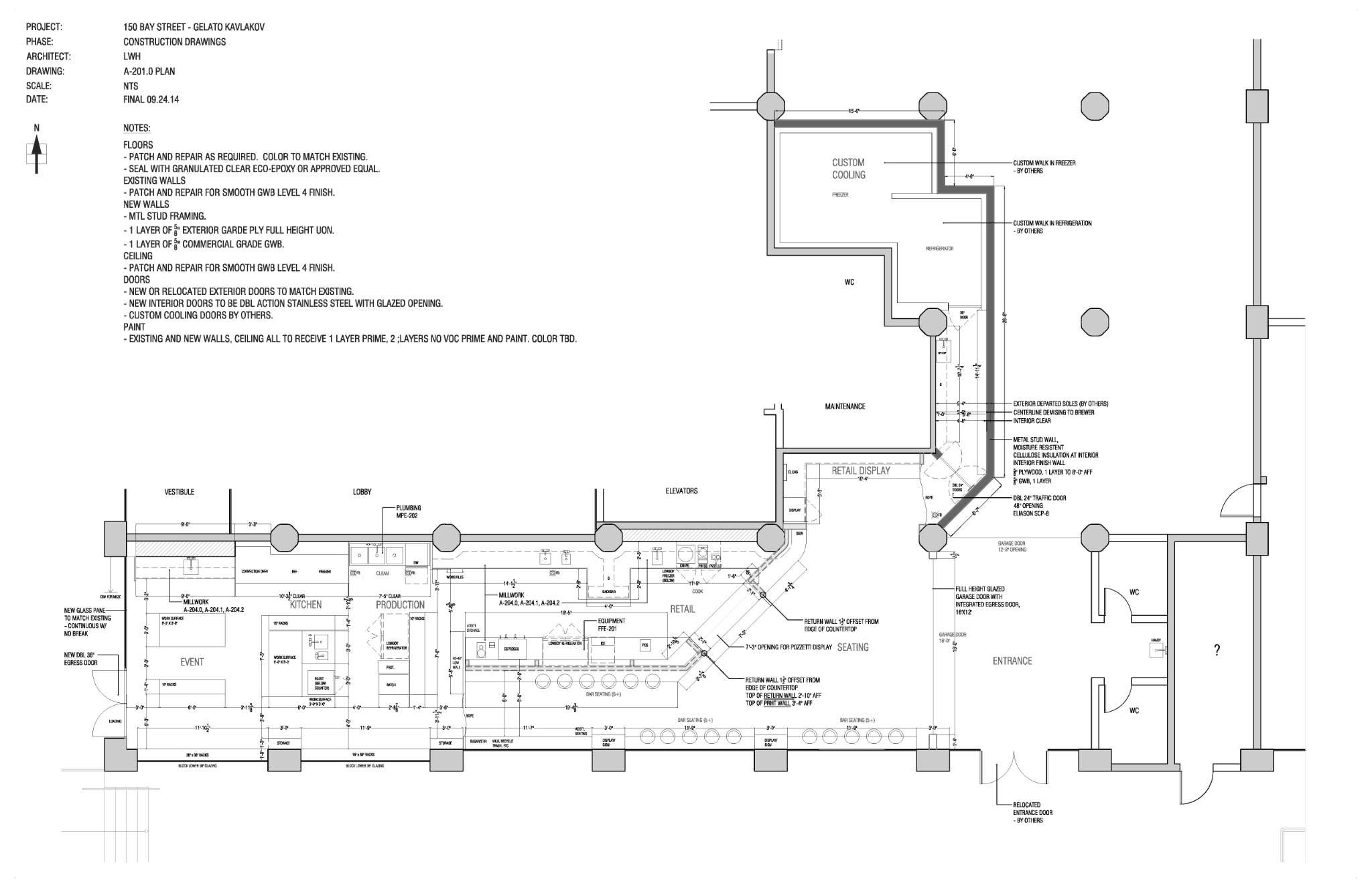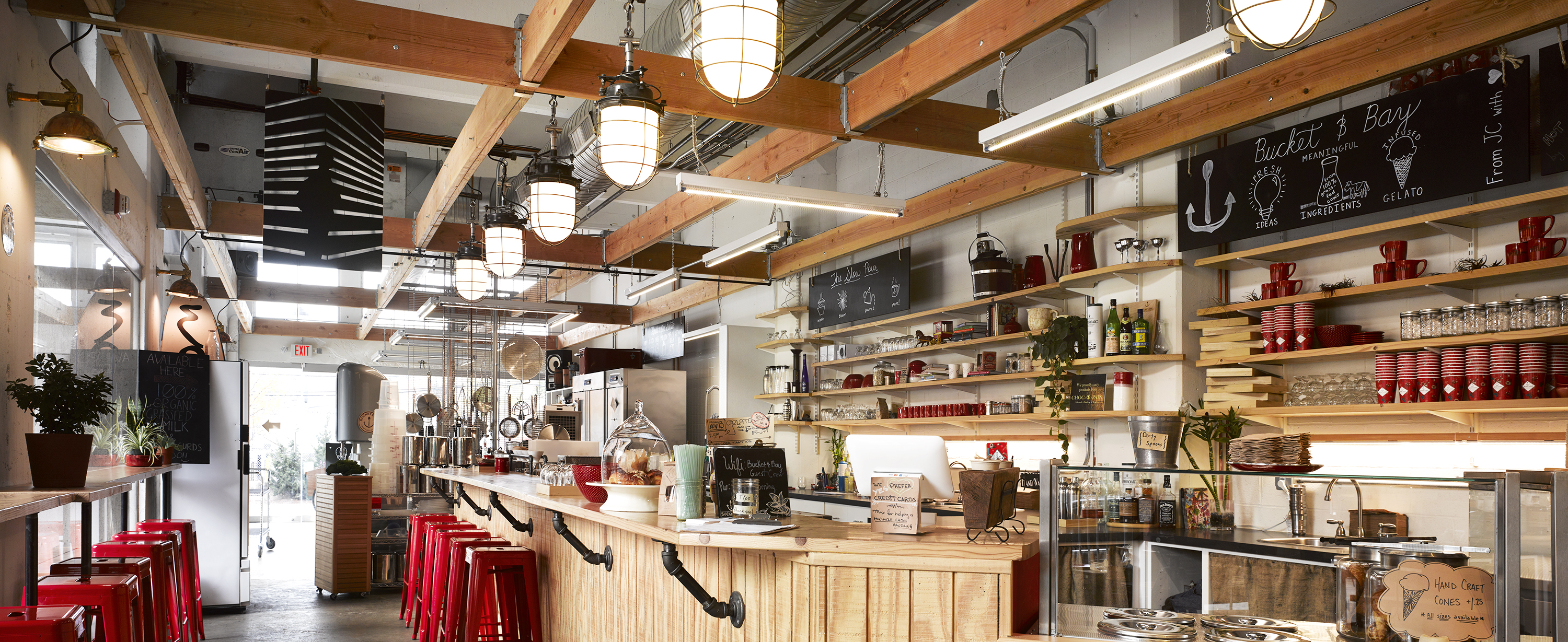 Bucket & Bay is a hybrid space: gelato laboratory, café, manufacturing and production facility. Project design and construction leadership from concept through commissioning, including branding, architectural design, procurement, and construction management. A future-proofed, flexible and adaptive multi-purpose environment.