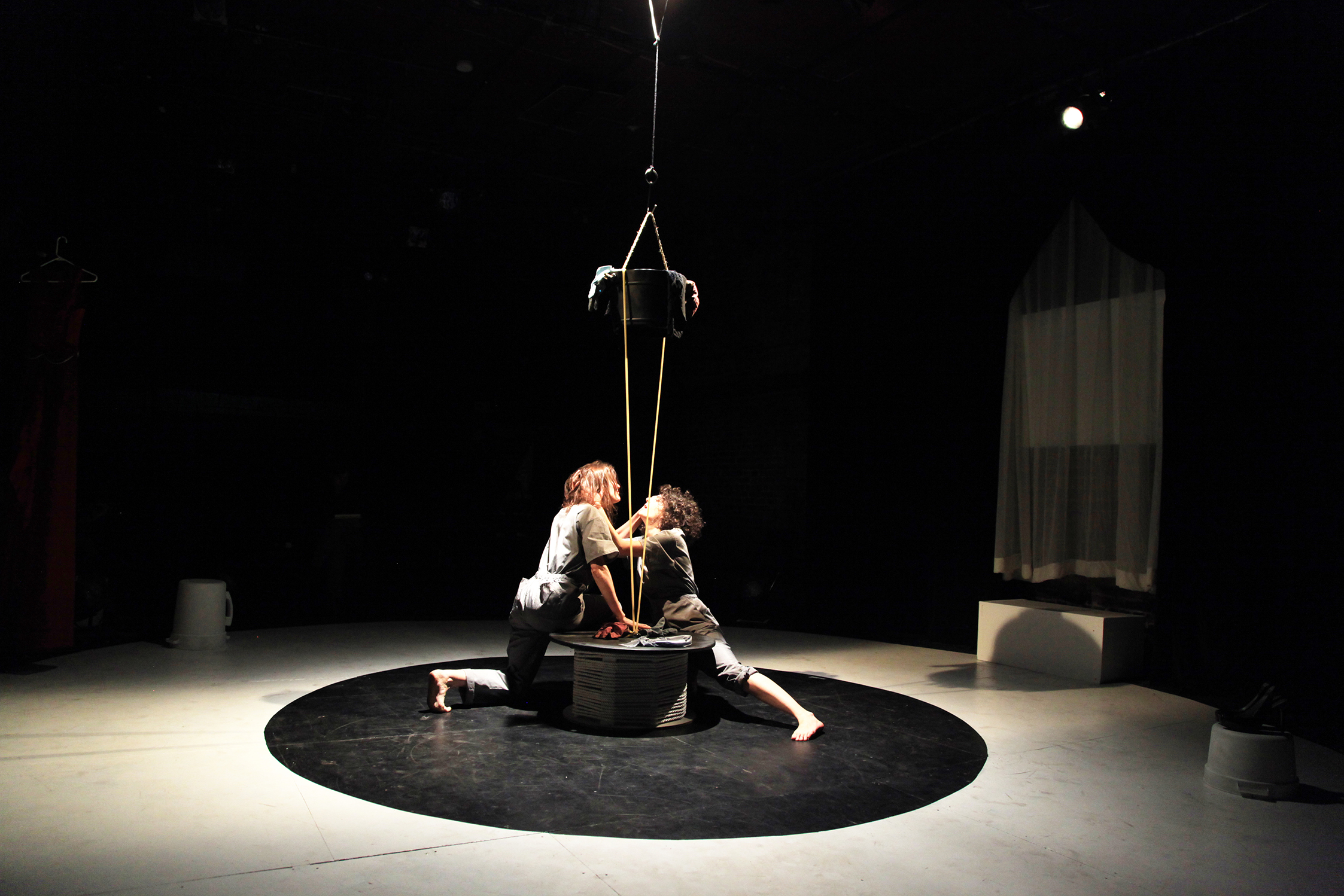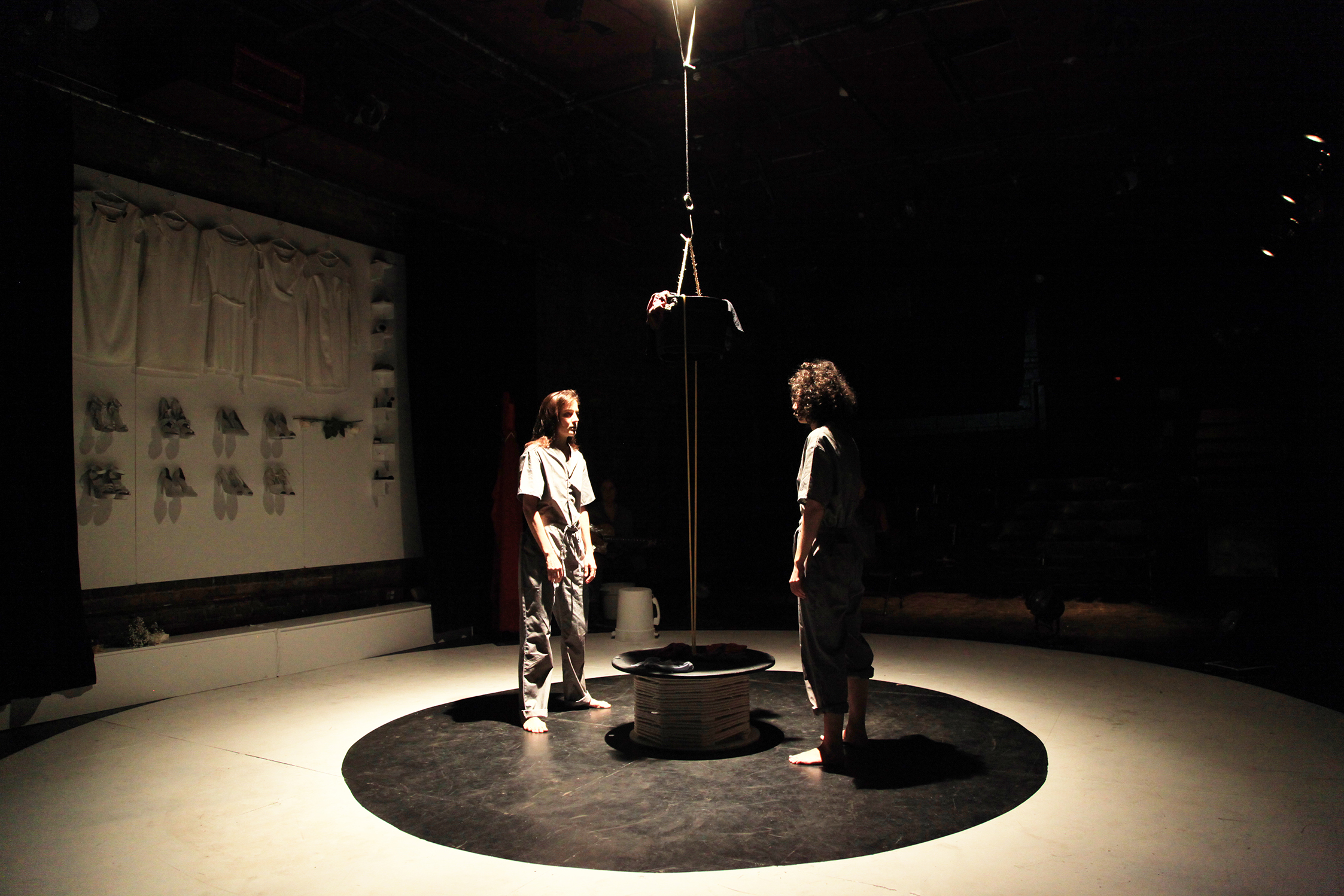 This was a stunning production, physically centered around a tall noose-like contraption with a twisted bucket — suggesting buckets of water eternally carried, to which Solange and Claire are tethered, like mules to a grinding stone. The set design, by Lloyd Huber and Di Girolamo, is as imaginative and emotionally signifying as any I’ve ever seen. — Yvonne Korshak, Let’s Talk Off Broadway